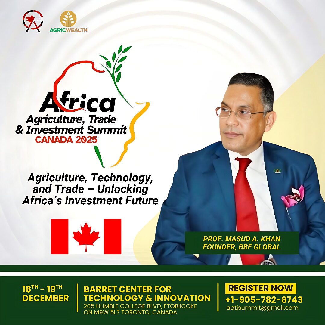 The Africa Agricultural, Trade & Investment Summit CANADA 2025, themed “Agricultural, Technology, and Trade—Unlocking Africa’s Investment Future,” is a pivotal event bringing together key stakeholders from Africa, Canada, and beyond. Scheduled for December 18th-19th, 2025, at the Barrett Centre for Technology Innovation in Toronto, Canada, this summit is poised to foster collaborations that drive economic growth, innovation, and sustainable development.